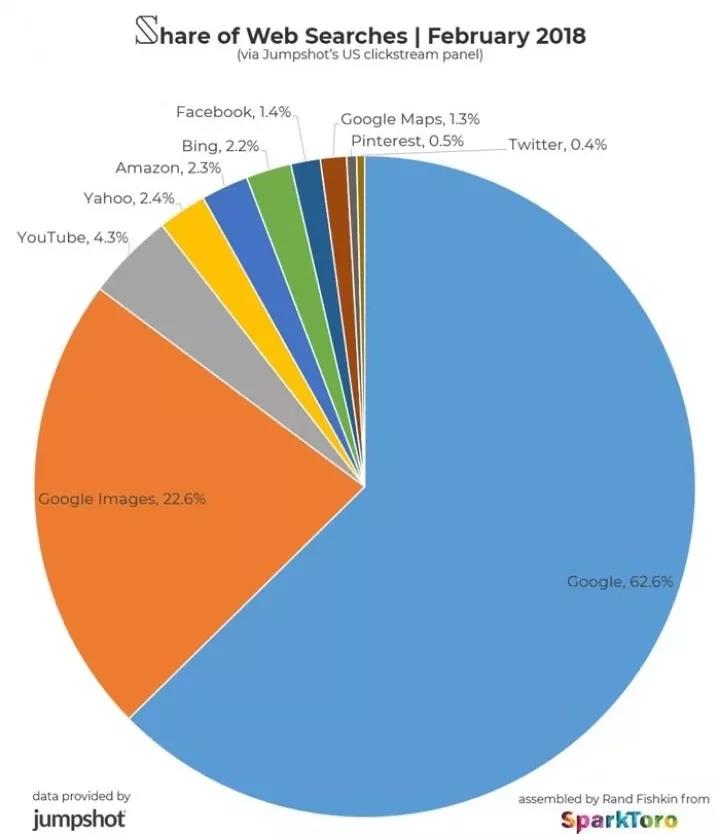 根據點(diǎn)擊數據流量公司Jumpshot和Moz的數據顯示,谷歌圖片搜索份額約占整體搜索量的22.6%,其市場(chǎng)份額相當可觀(guān)。