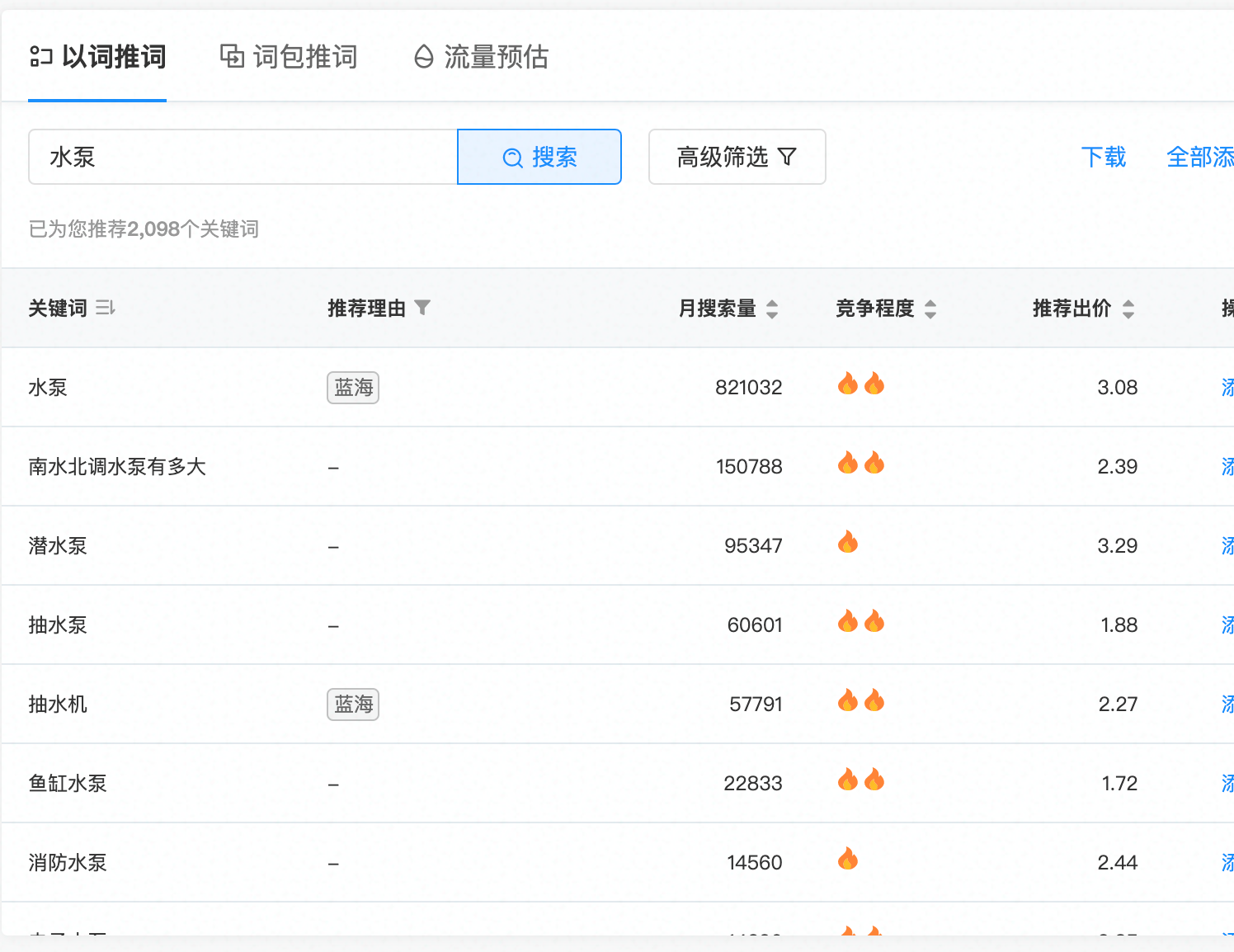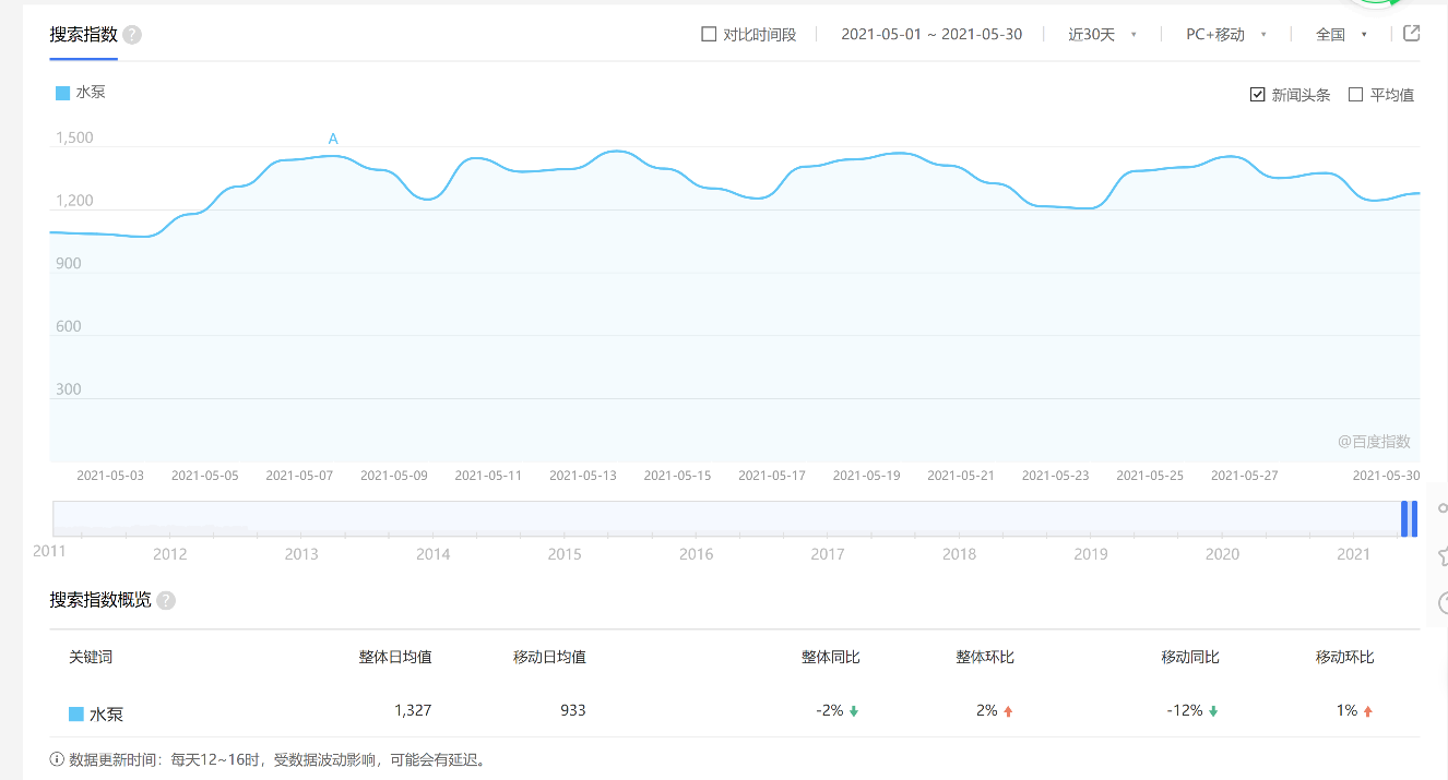 關(guān)鍵詞搜索量和百度的對比(以水泵為例)